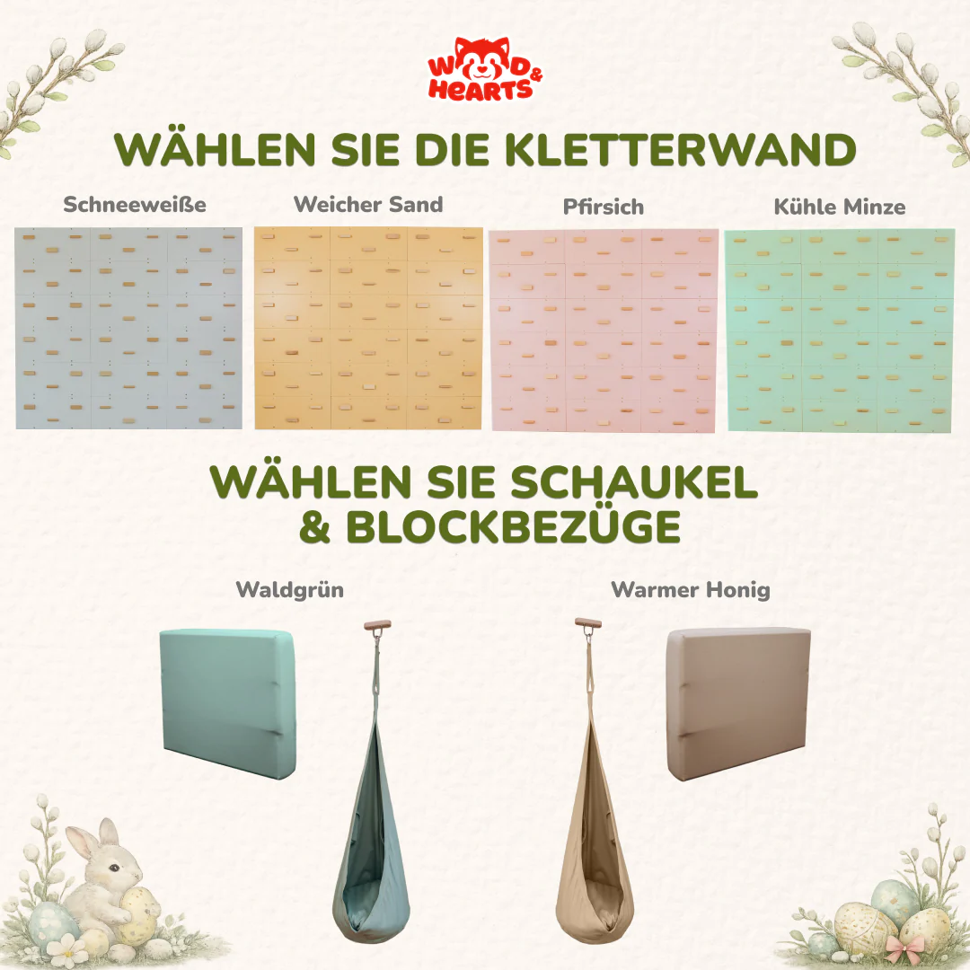 Farbe der Kletterwand wählen: Schneeweiße, Weicher Sand, Pfirsich, Kühle Minze